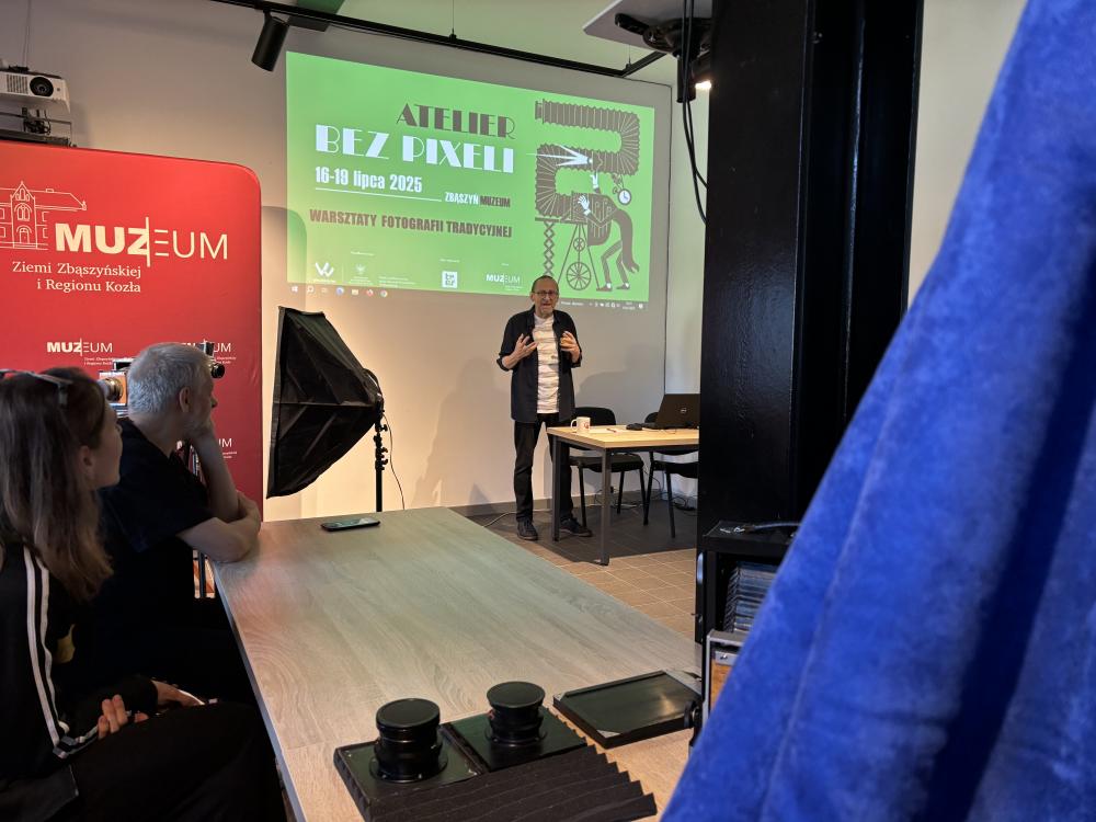 Wakacyjne bezpłatne warsztaty fotograficzne w Atelier bez Pixeli w Muzeum Ziemi Zbąszyńskiej i Regionu Kozła już za nami. Od 16 lipca do 19 lipca poznawaliśmy tajniki tradycyjnej fotografii. W tym roku pracowaliśmy aparatami wielkoformatowymi tworząc wystudiowane portrety. Poznawaliśmy też efektowną technikę cyjanotypi. Prowadzący: Waldemar Kremser, Karol Wilczyński, Wojtek Olejniczak i Kristina Wysocka.