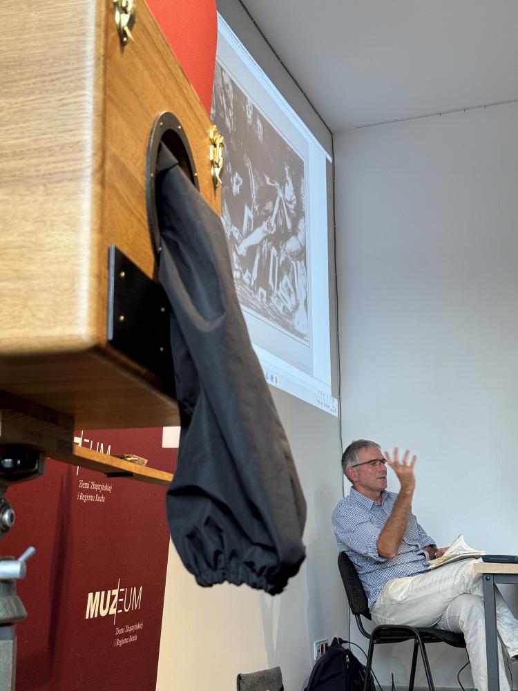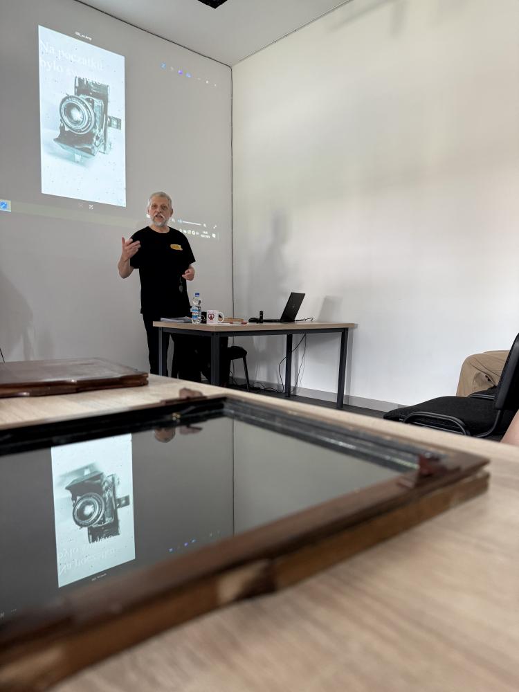 Gościem specjalnym był Lothar Quinkestein (literat, poeta i tłumacz), który opowiadał o Brunonie Schulzu i jego grafikach wykonanych w technice Cliché Vere - czyli skrobania kliszy fotograficznej. Mieliśmy też okazję poznać twórczość młodych artystów zajmujących się tradycyjnymi technikami bądź wykorzystujących stare fotografie: Dmytro Krasnyi i Daria Bielienkov. Nasze kilkudniowe zmagania zostały sfinalizowane wystawą, którą można do końca wakacji obejrzeć w Muzeum Ziemi Zbąszyńskiej i Regionu Kozła w Zbąszyniu. Zapraszamy.